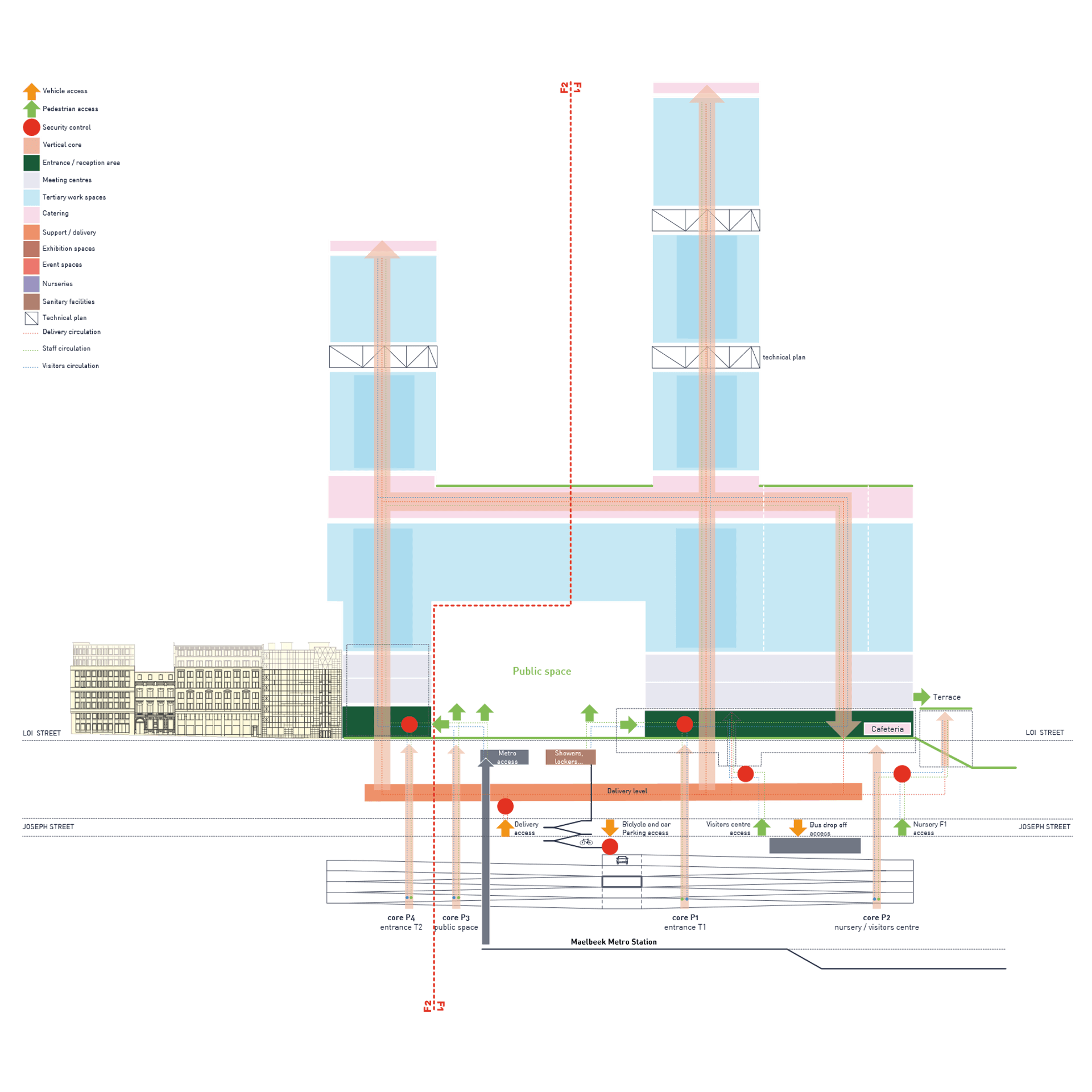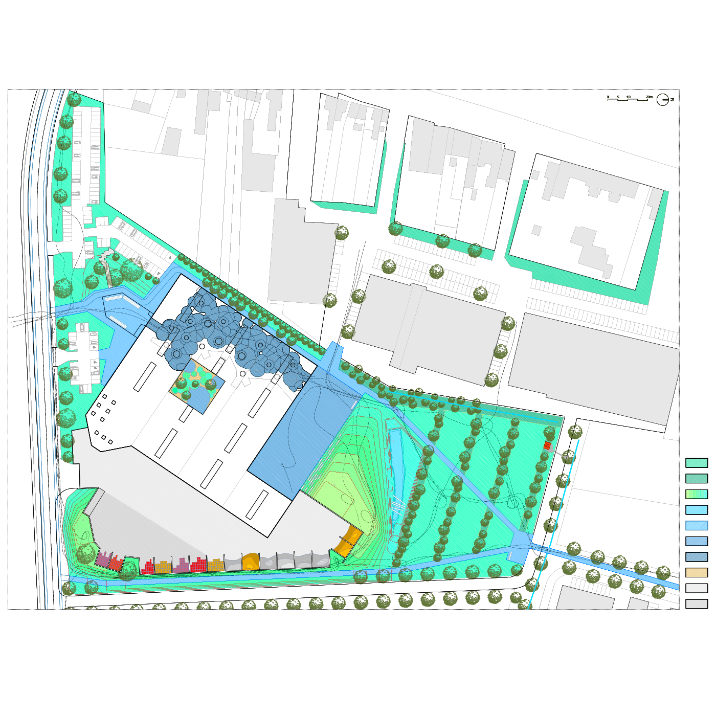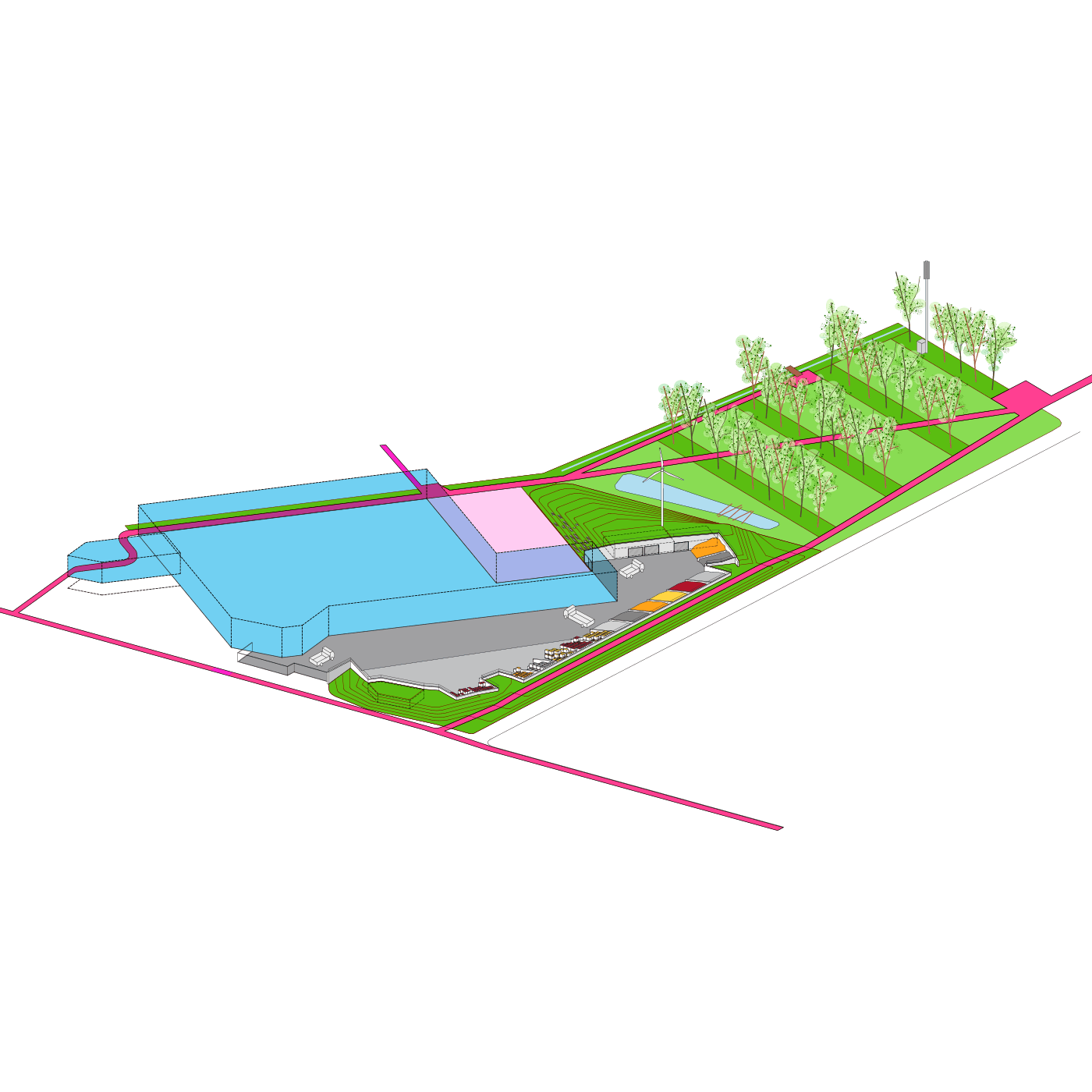- Westrand Masterplan, Design of a mobility plan, covered parking spaces, and square at Dilbeek (BE), Delivered, 2013.