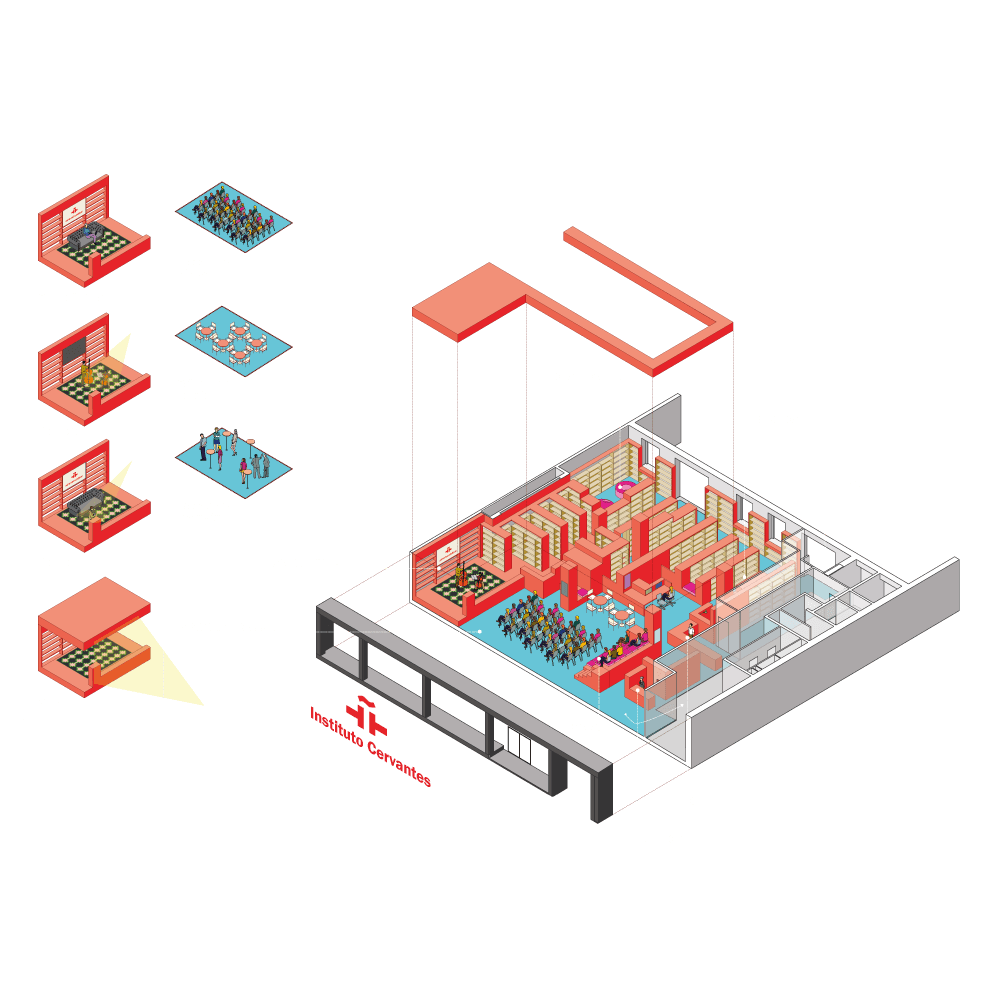 - Cervantes Institute Bruselas, Office building refurbishment, library and classrooms, Brussels (BE), Completed, 2015-16.